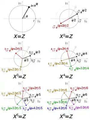 for 0 ≤ k ≤ n − 1. (Here is the usual (positive) nth root of the positive real number r.) Because sine and cosine are periodic, other integer values of k do not give other values. For any , there are, in particular n distinct complex n-th roots. For example, there are 4 fourth roots of 1, namely