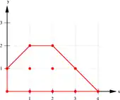 In fact, according to Carathéodory's theorem, if is a subset of a -dimensional Euclidean space, every convex combination of finitely many points from is also a convex combination of at most points in . The set of convex combinations of a -tuple of points is a simplex; in the plane it is a triangle and in three-dimensional space it is a tetrahedron. Therefore, every convex combination of points of belongs to a simplex whose vertices belong to , and the third and fourth definitions are equivalent.[7]