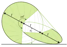 For the convex hull of a space curve or finite set of space curves in general position in three-dimensional space, the parts of the boundary away from the curves are developable and ruled surfaces.[27] Examples include the oloid, the convex hull of two circles in perpendicular planes, each passing through the other's center,[28] the sphericon, the convex hull of two semicircles in perpendicular planes with a common center, and D-forms, the convex shapes obtained from Alexandrov's uniqueness theorem for a surface formed by gluing together two planar convex sets of equal perimeter.[29]
