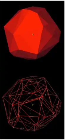 The Delaunay triangulation of a point set and its dual, the Voronoi diagram, are mathematically related to convex hulls: the Delaunay triangulation of a point set in can be viewed as the projection of a convex hull in [46] The alpha shapes of a finite point set give a nested family of (non-convex) geometric objects describing the shape of a point set at different levels of detail. Each of alpha shape is the union of some of the features of the Delaunay triangulation, selected by comparing their circumradius to the parameter alpha. The point set itself forms one endpoint of this family of shapes, and its convex hull forms the other endpoint.[41] The convex layers of a point set are a nested family of convex polygons, the outermost of which is the convex hull, with the inner layers constructed recursively from the points that are not vertices of the convex hull.[47]
