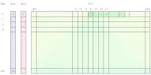 The Boolean expression uses the variables set out in the following table. Here, is a machine state, is a tape position, is a tape symbol, and is the number of a computation step.