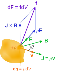 The density of force due to electromagnetism, whose spatial part is the Lorentz force, is given by