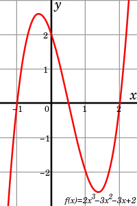 The solutions of this equation are called roots of the cubic function defined by the left-hand side of the equation. If all of the coefficients a, b, c, and d of the cubic equation are real numbers, then it has at least one real root (this is true for all odd-degree polynomial functions). All of the roots of the cubic equation can be found by the following means: