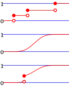 Every probability distribution supported on the real numbers, discrete or "mixed" as well as continuous, is uniquely identified by a right-continuous monotone increasing function (a càdlàg function) satisfying and .