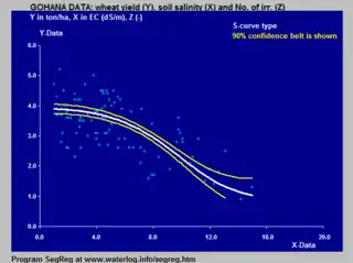 In agriculture the inverted logistic sigmoid function (S-curve) is used to describe the relation between crop yield and growth factors. The blue figure was made by a sigmoid regression of data measured in farm lands. It can be seen that initially, i.e. at low soil salinity, the crop yield reduces slowly at increasing soil salinity, while thereafter the decrease progresses faster.
