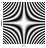 The notion of a Fourier transform is readily generalized. One such formal generalization of the N-point DFT can be imagined by taking N arbitrarily large. In the limit, the rigorous mathematical machinery treats such linear operators as so-called integral transforms. In this case, if we make a very large matrix with complex exponentials in the rows (i.e., cosine real parts and sine imaginary parts), and increase the resolution without bound, we approach the kernel of the Fredholm integral equation of the 2nd kind, namely the Fourier operator that defines the continuous Fourier transform. A rectangular portion of this continuous Fourier operator can be displayed as an image, analogous to the DFT matrix, as shown at right, where greyscale pixel value denotes numerical quantity.
