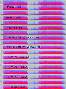 Perceptual coding was first used for speech coding compression, with linear predictive coding (LPC).[54] Initial concepts for LPC date back to the work of Fumitada Itakura (Nagoya University) and Shuzo Saito (Nippon Telegraph and Telephone) in 1966.[55] During the 1970s, Bishnu S. Atal and Manfred R. Schroeder at Bell Labs developed a form of LPC called adaptive predictive coding (APC), a perceptual coding algorithm that exploited the masking properties of the human ear, followed in the early 1980s with the code-excited linear prediction (CELP) algorithm which achieved a significant compression ratio for its time.[54] Perceptual coding is used by modern audio compression formats such as MP3[54] and AAC.