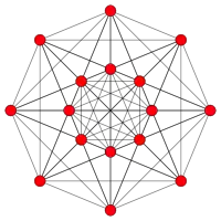 An n-demicube, n greater than 2, has n(n−1)/2 edges meeting at each vertex. The graphs below show less edges at each vertex due to overlapping edges in the symmetry projection.