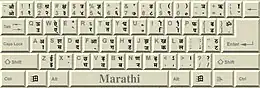 ![]() Devanāgarī script (vowels top three rows, consonants below) | |