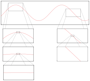 In mathematics, a differentiable function of one real variable is a function whose derivative exists at each point in its domain. In other words, the graph of a differentiable function has a non-vertical tangent line at each interior point in its domain. A differentiable function is smooth (the function is locally well approximated as a linear function at each interior point) and does not contain any break, angle, or cusp.