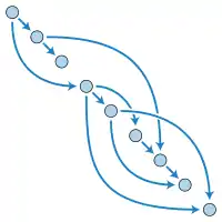 A graph is formed by vertices and by edges connecting pairs of vertices, where the vertices can be any kind of object that is connected in pairs by edges. In the case of a directed graph, each edge has an orientation, from one vertex to another vertex. A path in a directed graph is a sequence of edges having the property that the ending vertex of each edge in the sequence is the same as the starting vertex of the next edge in the sequence; a path forms a cycle if the starting vertex of its first edge equals the ending vertex of its last edge. A directed acyclic graph is a directed graph that has no cycles.[1][2][3]