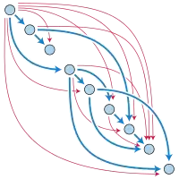 In a citation graph the vertices are documents with a single publication date. The edges represent the citations from the bibliography of one document to other necessarily earlier documents. The classic example comes from the citations between academic papers as pointed out in the 1965 article "Networks of Scientific Papers"[49] by Derek J. de Solla Price who went on to produce the first model of a citation network, the Price model.[50] In this case the citation count of a paper is just the in-degree of the corresponding vertex of the citation network. This is an important measure in citation analysis. Court judgements provide another example as judges support their conclusions in one case by recalling other earlier decisions made in previous cases. A final example is provided by patents which must refer to earlier prior art, earlier patents which are relevant to the current patent claim. By taking the special properties of directed acyclic graphs into account, one can analyse citation networks with techniques not available when analysing the general graphs considered in many studies using network analysis. For instance transitive reduction gives new insights into the citation distributions found in different applications highlighting clear differences in the mechanisms creating citations networks in different contexts.[51] Another technique is main path analysis, which traces the citation links and suggests the most significant citation chains in a given citation graph.