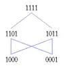 Directed set is a more general concept than (join) semilattice: every join semilattice is a directed set, as the join or least upper bound of two elements is the desired The converse does not hold however, witness the directed set {1000,0001,1101,1011,1111} ordered bitwise (e.g. holds, but does not, since in the last bit 1 > 0), where {1000,0001} has three upper bounds but no least upper bound, cf. picture. (Also note that without 1111, the set is not directed.)