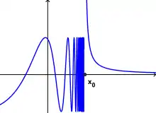 A special case is if the function diverges to infinity or minus infinity, in which case the oscillation is not defined (in the extended real numbers, this is a removable discontinuity).