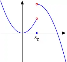• in a jump discontinuity, the size of the jump is the oscillation (assuming that the value at the point lies between these limits of the two sides);
