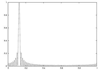 Figures 2 and 3 are plots of the magnitude of two different sized DFTs, as indicated in their labels. In both cases, the dominant component is at the signal frequency: . Also visible in Fig 2 is the spectral leakage pattern of the rectangular window. The illusion in Fig 3 is a result of sampling the DTFT at just its zero-crossings. Rather than the DTFT of a finite-length sequence, it gives the impression of an infinitely long sinusoidal sequence. Contributing factors to the illusion are the use of a rectangular window, and the choice of a frequency (1/8 = 8/64) with exactly 8 (an integer) cycles per 64 samples. A Hann window would produce a similar result, except the peak would be widened to 3 samples (see DFT-even Hann window).