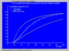 - Plotting position plus Regression analysis, using a transformation of the cumulative distribution function so that a linear relation is found between the cumulative probability and the values of the data, which may also need to be transformed, depending on the selected probability distribution. In this method the cumulative probability needs to be estimated by the plotting position[6]