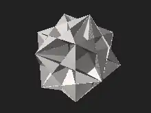 Furthermore, it may be viewed as a facetted dodecahedron: the pentagrammic faces are inscribed in the dodecahedron's pentagons. Its dual, the medial triambic icosahedron, is a stellation of the icosahedron.