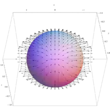 In vector calculus, the divergence theorem, also known as Gauss's theorem or Ostrogradsky's theorem,[1] is a theorem relating the flux of a vector field through a closed surface to the divergence of the field in the volume enclosed.
