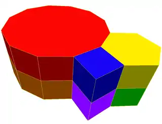 Pentagonal prism | Hexagonal prism | Heptagonal prism | Octagonal prism | Enneagonal prism | Decagonal prism | Hendecagonal prism | Dodecagonal prism | ... | Apeirogonal prism |
