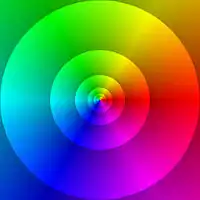 This approach uses the HSL (hue, saturation, lightness) color model. Saturation is always set at the maximum of 100%. Vivid colors of the rainbow are rotating in a continuous way on the complex unit circle, so the sixth roots of unity (starting with 1) are: green, cyan, blue, magenta, red, and yellow.