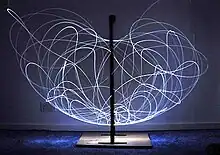 In physics and mathematics, in the area of dynamical systems, a double pendulum also known as a chaotic pendulum is a pendulum with another pendulum attached to its end, forming a simple physical system that exhibits rich dynamic behavior with a strong sensitivity to initial conditions.[1] The motion of a double pendulum is governed by a set of coupled ordinary differential equations and is chaotic.