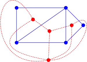 In the mathematical discipline of graph theory, the dual graph of a planar graph G is a graph that has a vertex for each face of G. The dual graph has an edge for each pair of faces in G that are separated from each other by an edge, and a self-loop when the same face appears on both sides of an edge. Thus, each edge e of G has a corresponding dual edge, whose endpoints are the dual vertices corresponding to the faces on either side of e. The definition of the dual depends on the choice of embedding of the graph G, so it is a property of plane graphs (graphs that are already embedded in the plane) rather than planar graphs (graphs that may be embedded but for which the embedding is not yet known). For planar graphs generally, there may be multiple dual graphs, depending on the choice of planar embedding of the graph.
