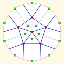 Another operation on surface-embedded graphs is the Petrie dual, which uses the Petrie polygons of the embedding as the faces of a new embedding. Unlike the usual dual graph, it has the same vertices as the original graph, but generally lies on a different surface.[41] Surface duality and Petrie duality are two of the six Wilson operations, and together generate the group of these operations.[42]