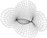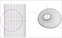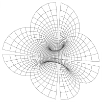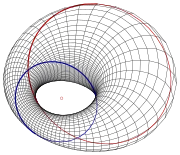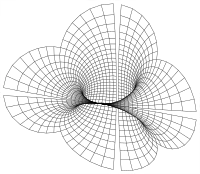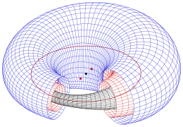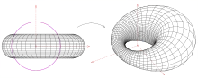 In mathematics, a Dupin cyclide or cyclide of Dupin is any geometric inversion of a standard torus, cylinder or double cone. In particular, these latter are themselves examples of Dupin cyclides. They were discovered c. 1802 by (and named after) Charles Dupin, while he was still a student at the École polytechnique following Gaspard Monge's lectures.[1] The key property of a Dupin cyclide is that it is a channel surface (envelope of a one-parameter family of spheres) in two different ways. This property means that Dupin cyclides are natural objects in Lie sphere geometry.