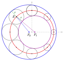 - The difference/sum of the sphere's radius and the distance of the sphere's center (ellipse point) from one (but fixed) of the foci is constant.