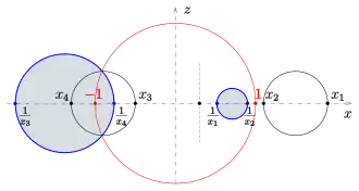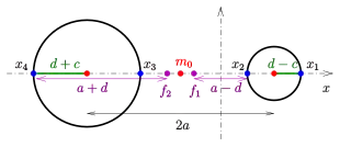The inversion maps onto , which are the x-coordinates of 4 points of the ring-cyclide (see diagram). From section Cyclide through 4 points on the x-axis one gets