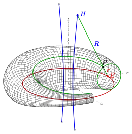In case of a torus () the hyperbola degenerates into the axis of the torus.