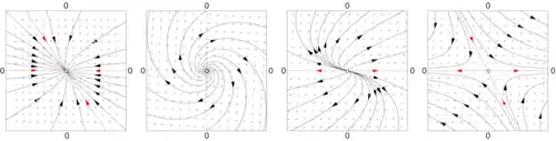 When b = 0, the eigenvalues of A determine the structure of the phase space. From the eigenvalues and the eigenvectors of A it is possible to determine if an initial point will converge or diverge to the equilibrium point at the origin.