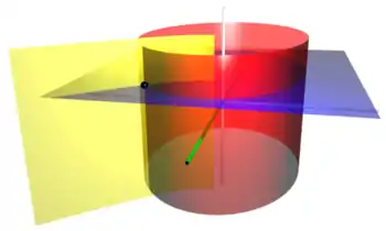 Elliptic cylindrical coordinates are a three-dimensional orthogonal coordinate system that results from projecting the two-dimensional elliptic coordinate system in the perpendicular -direction. Hence, the coordinate surfaces are prisms of confocal ellipses and hyperbolae. The two foci and are generally taken to be fixed at and , respectively, on the -axis of the Cartesian coordinate system.