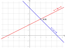 A system of linear equations (or linear system) is a collection of linear equations involving one or more variables.[lower-alpha 2] For example,
