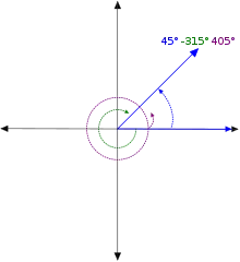 In an oriented Euclidean plane, one can define the oriented angle of two vectors. The oriented angle of two vectors x and y is then the opposite of the oriented angle of y and x. In this case, the angle of two vectors can have any value modulo an integer multiple of 2π. In particular, a reflex angle π < θ < 2π equals the negative angle −π < θ − 2π < 0.