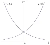 The graph of is upward-sloping, and increases faster as x increases.[4] The graph always lies above the x-axis, but becomes arbitrarily close to it for large negative x; thus, the x-axis is a horizontal asymptote. The equation means that the slope of the tangent to the graph at each point is equal to its y-coordinate at that point.