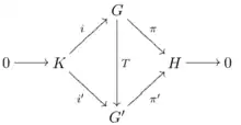 are equivalent (or congruent) if there exists a group isomorphism making commutative the diagram of Figure 1. In fact it is sufficient to have a group homomorphism; due to the assumed commutativity of the diagram, the map is forced to be an isomorphism by the short five lemma.
