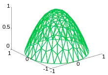for ; this basis is a shifted and scaled tent function. For the two-dimensional case, we choose again one basis function per vertex of the triangulation of the planar region . The function is the unique function of whose value is at and zero at every .