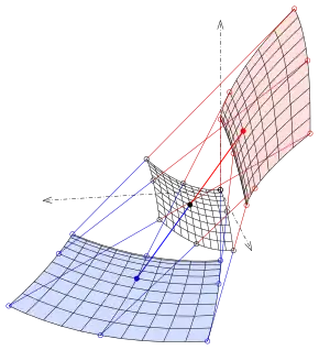 - Two confocal quadrics (for example an ellipsoid and a hyperboloid of one sheet) can be considered as focal surfaces of a surface.[6]