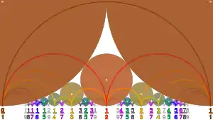 2. the circles associated with the fractions that are the neighbors of in some Farey sequence,[1] or