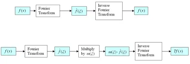 One can view the multiplier operator T as the composition of three operators, namely the Fourier transform, the operation of pointwise multiplication by m, and then the inverse Fourier transform. Equivalently, T is the conjugation of the pointwise multiplication operator by the Fourier transform. Thus one can think of multiplier operators as operators which are diagonalized by the Fourier transform.