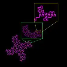 In mathematics, a fractal dimension is a term invoked in the science of geometry to provide a rational statistical index of complexity detail in a pattern. A fractal pattern changes with the scale at which it is measured. It is also a measure of the space-filling capacity of a pattern, and it tells how a fractal scales differently, in a fractal (non-integer) dimension.[1][2][3]