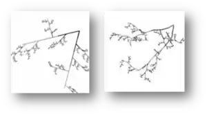 As is the case with dimensions determined for lines, squares, and cubes, fractal dimensions are general descriptors that do not uniquely define patterns.[24][25] The value of D for the Koch fractal discussed above, for instance, quantifies the pattern's inherent scaling, but does not uniquely describe nor provide enough information to reconstruct it. Many fractal structures or patterns could be constructed that have the same scaling relationship but are dramatically different from the Koch curve, as is illustrated in Figure 6.