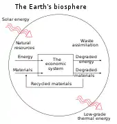 In four books written from 1921 to 1934, Soddy carried on a "campaign for a radical restructuring of global monetary relationships",[21] offering a perspective on economics rooted in physics – the laws of thermodynamics, in particular – and was "roundly dismissed as a crank".[21] While most of his proposals – "to abandon the gold standard, let international exchange rates float, use federal surpluses and deficits as macroeconomic policy tools that could counter cyclical trends, and establish bureaus of economic statistics (including a consumer price index) in order to facilitate this effort" – are now conventional practice, his critique of fractional-reserve banking still "remains outside the bounds of conventional wisdom" although a recent paper by the IMF reinvigorated his proposals.[21][22] Soddy wrote that financial debts grew exponentially at compound interest but the real economy was based on exhaustible stocks of fossil fuels. Energy obtained from the fossil fuels could not be used again. This criticism of economic growth is echoed by his intellectual heirs in the now emergent field of ecological economics.[21]