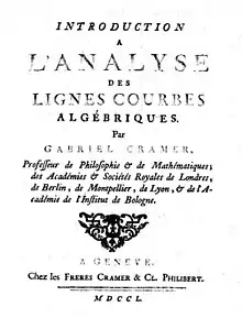 - Introduction à l'analyse des lignes courbes algébriques at Google Books. Geneva: Frères Cramer & Cl. Philibert, 1750