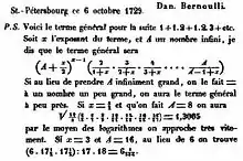 - Euler's paper was published in Commentarii academiae scientiarum Petropolitanae 5, 1738, 36–57. See E19 -- De progressionibus transcendentibus seu quarum termini generales algebraice dari nequeunt, from The Euler Archive, which includes a scanned copy of the original article.