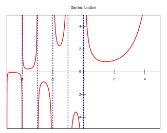 In mathematics, the gamma function (represented by Γ, the capital letter gamma from the Greek alphabet) is one commonly used extension of the factorial function to complex numbers. The gamma function is defined for all complex numbers except the non-positive integers. For every positive integer n,