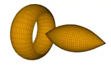 There are other surfaces which have constant positive Gaussian curvature. Manfredo do Carmo considers surfaces of revolution where , and (an incomplete Elliptic integral of the second kind). These surfaces all have constant Gaussian curvature of 1, but, for either have a boundary or a singular point. do Carmo also gives three different examples of surface with constant negative Gaussian curvature, one of which is pseudosphere.[4]