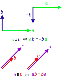 To cover degenerate symmetric bilinear forms, the last condition must be modified.[lower-alpha 3] It can be shown that these conditions uniquely characterize the geometric product.